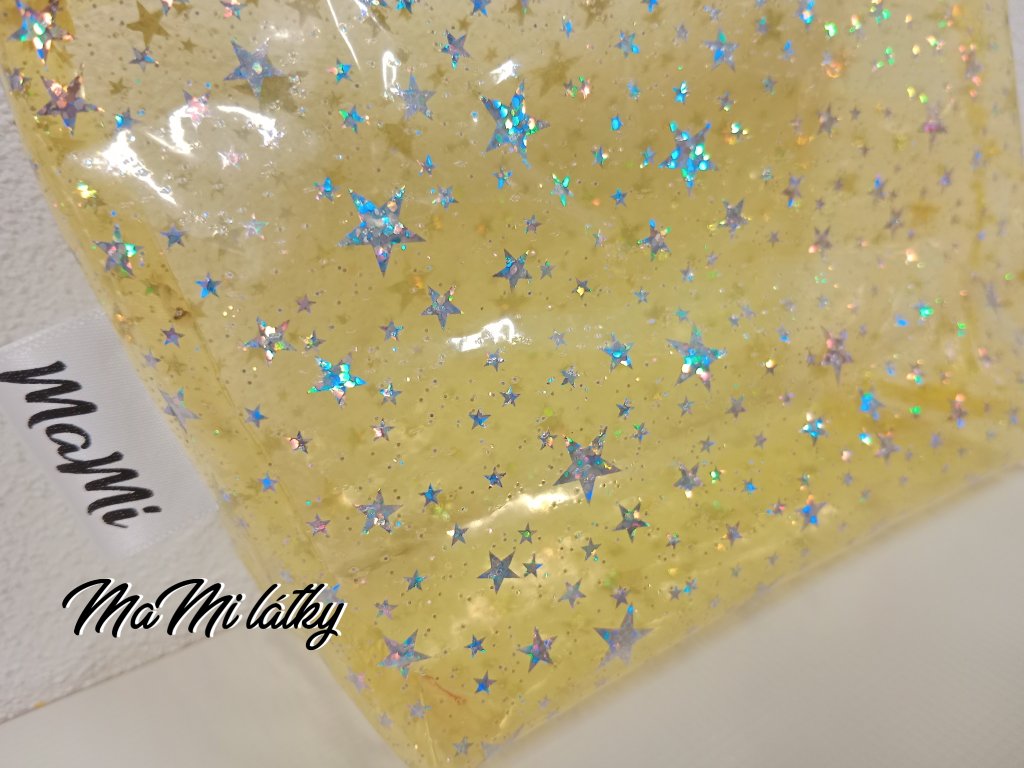 Fólie k šití transparentní 20x30cm hvězdičky glitter světle modré
