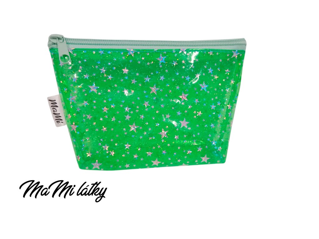 Fólie k šití transparentní 20x30cm hvězdičky glitter zelená