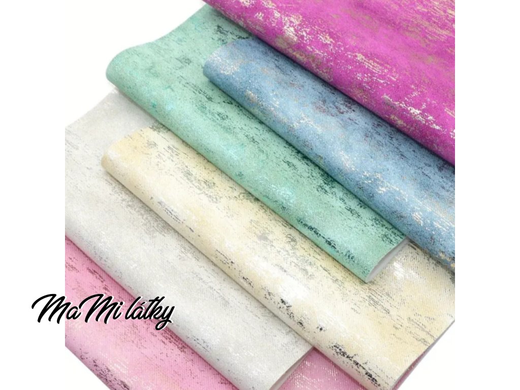 Koženkový panel 20x30cm zelený jeans se zlatotiskem