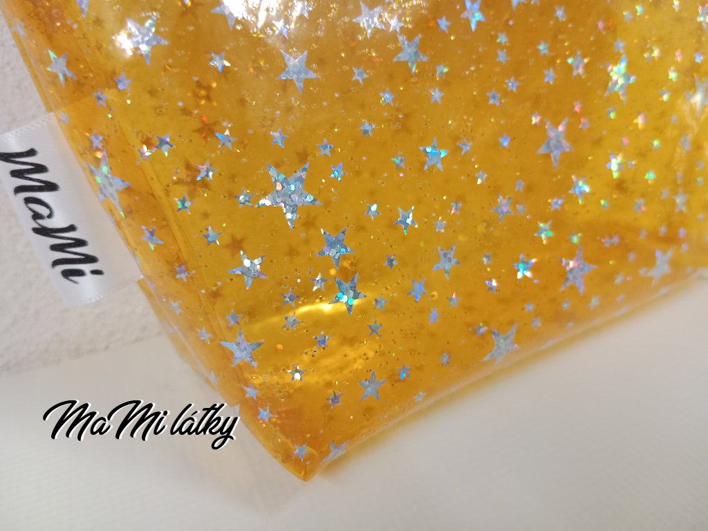 Fólie k šití transparentní 20x30cm hvězdičky tmavě žluté