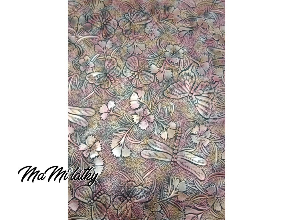 Panel z kvalitní koženky s vytlačeným reliéfním vzorem určený na výrobu doplňků.