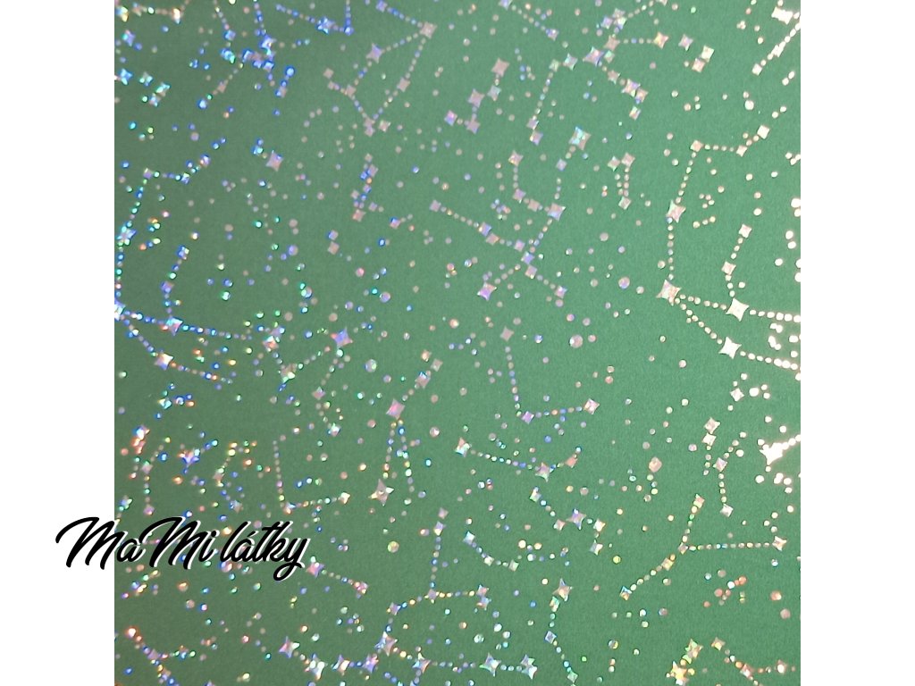 Koženkový panel s holografickým tiskem 20x30cm tmavá zelená se souhvězdím
