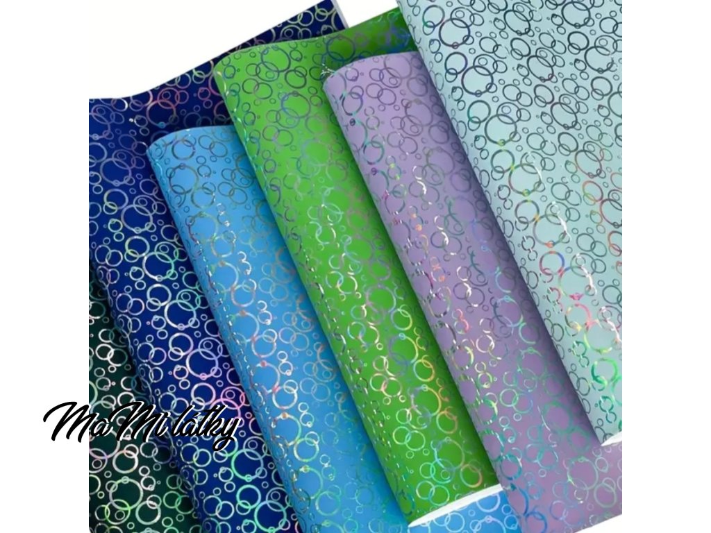 Koženkový panel s holografickým tiskem 20x30cm zelená kolečka