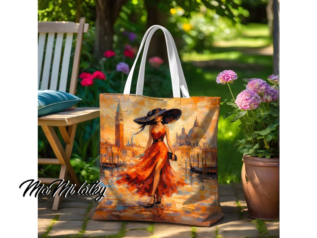 Panel z kočárkoviny určený pro ušití nákupní tašky.