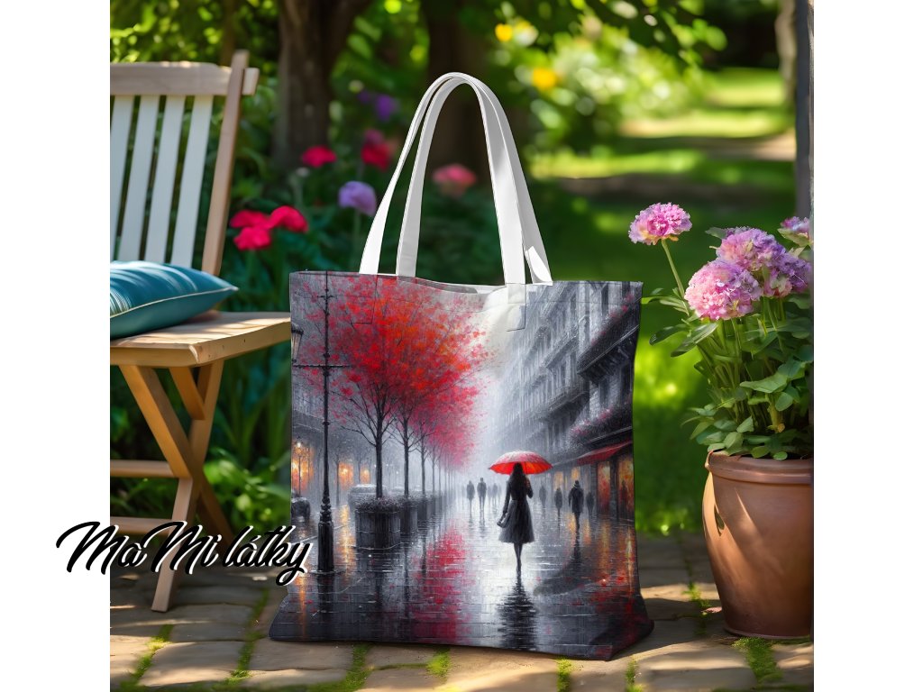 Zrcadlový panel 50x100cm žena s deštníkem v ulici